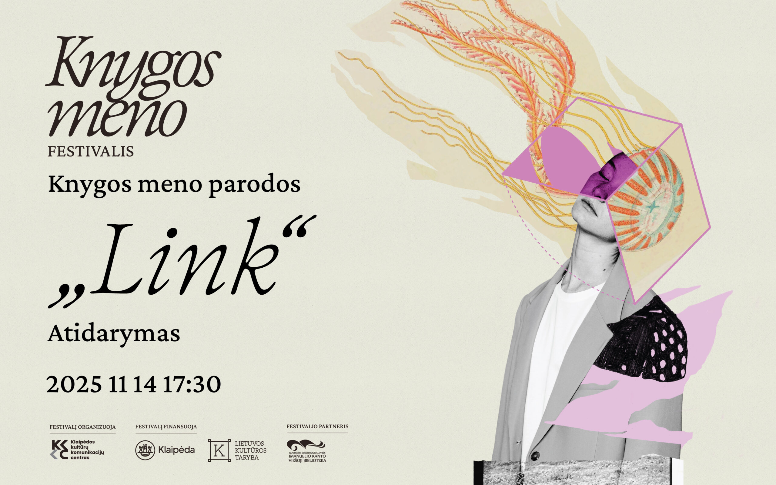 Š. m. lapkričio 14 d., penktadienį, 17.30 val. Klaipėdos kultūrų komunikacijų centro (KKKC) Parodų rūmuose atidaroma knygos meno festivalio paroda „Link“, kuratorė Violeta Mackialo.