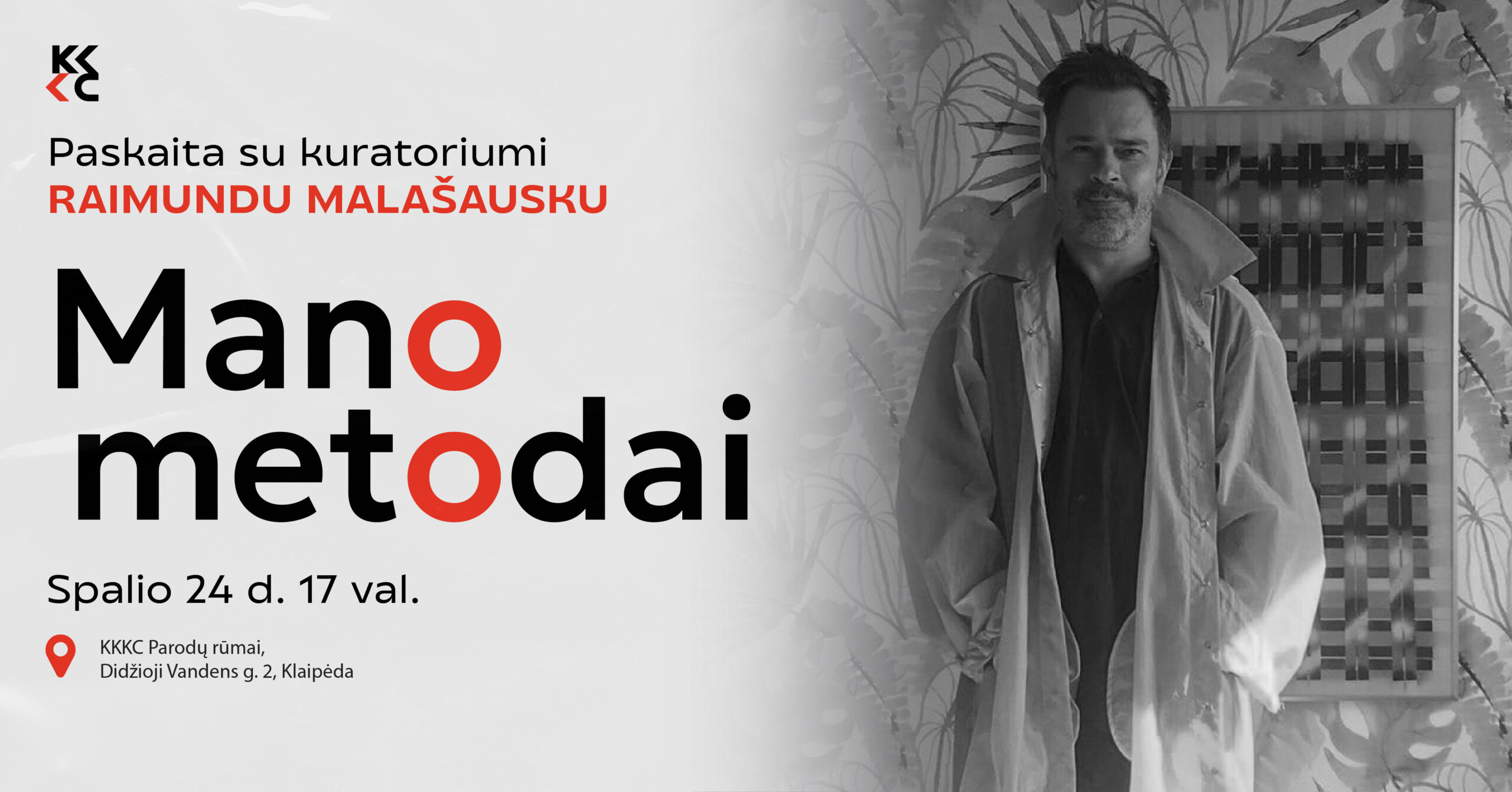 Spalio 24 d. 17.00 val. KKKC Parodų rūmuose vyks meno kuratoriaus ir KKKC rezidento Raimundo Malašausko paskaita „Mano metodai“. Jis pristatys Niujorko bienalei „Performa“ paruoštą savo lapkričio mėnesio projektą „Įleiskite klounus“ ir daugiau papasakos apie savo, kaip kuratoriaus, biografiją.