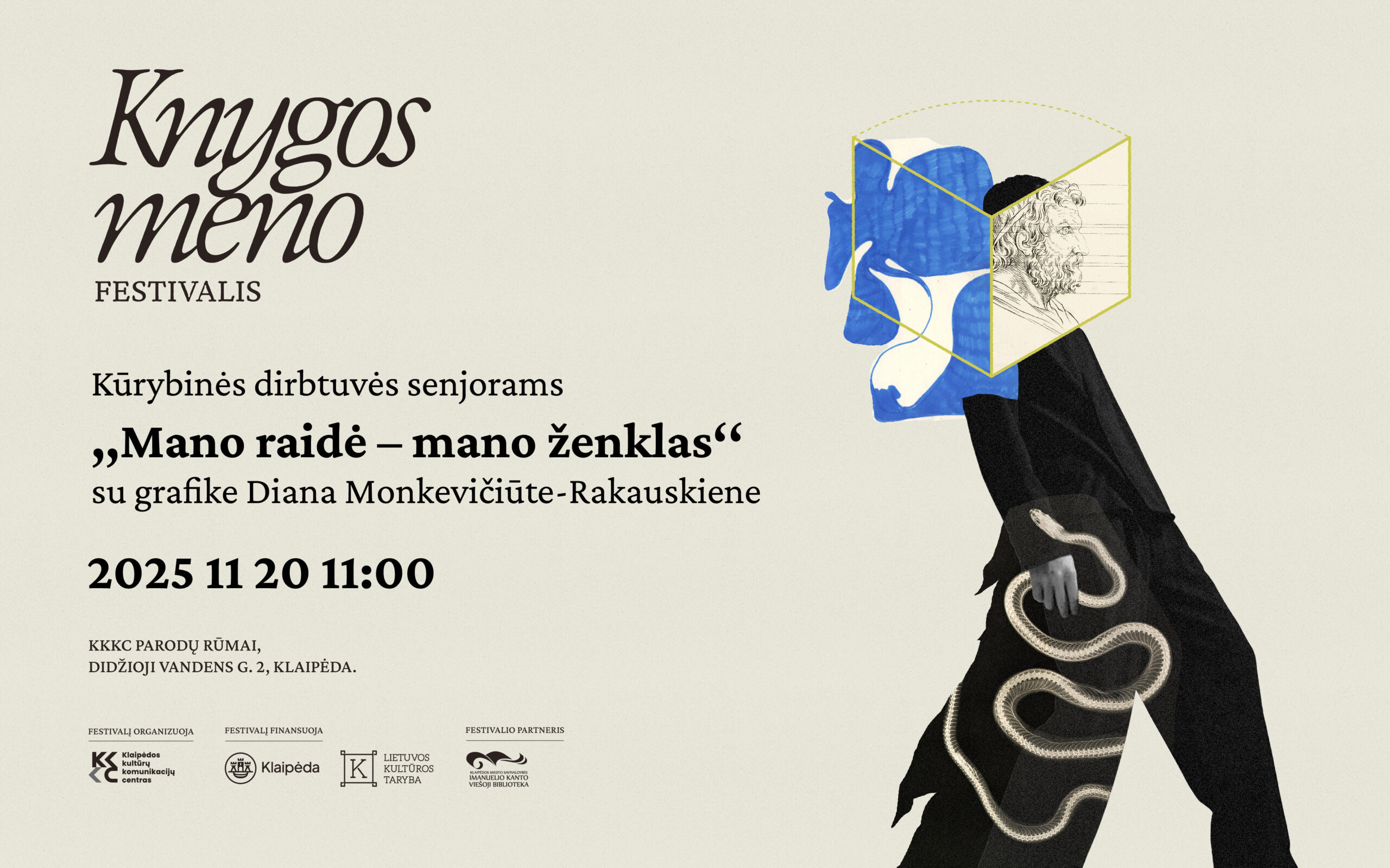 Lapkričio 20 d., ketvirtadienį, 11.00 val. Klaipėdos kultūrų komunikacijų centro (KKKC) Parodų rūmuose vyks kūrybinės Dianos Monkevičiūtės-Rakauskienės dirbtuvės senjorams ,,Mano raidė – mano ženklas‘‘.