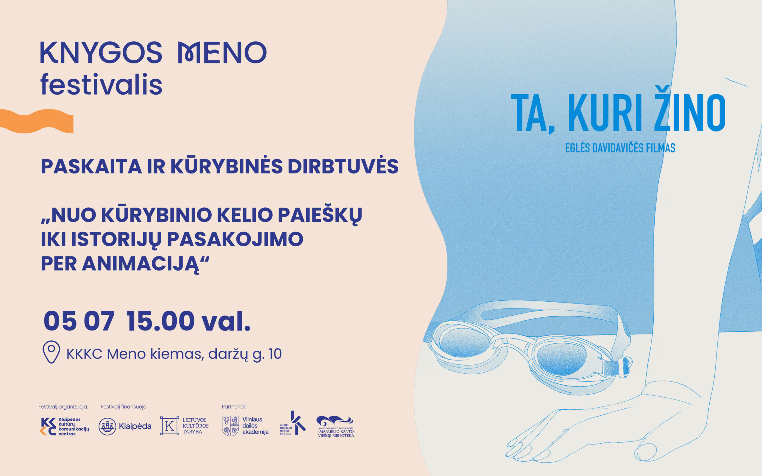 Gegužės 7 d., ketvirtadienį, 15.00 val. Vilniaus dailės akademijos Klaipėdos fakultete (Daržų g. 18) vyks Eglės Davidavičės paskaita ir kūrybinės dirbtuvės „Nuo kūrybinio kelio paieškų iki istorijų pasakojimo per animaciją“. Skirta vyresniųjų klasių moksleiviams ir studentams. Renginys yra Knygos meno festivalio programos dalis.