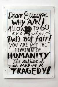 2013 m. spalio 3 d. buvo „ašarų diena“*. Apie 500 migrantų iš Eritrėjos ir Somalio gabenęs Libijos laivas pakeliui iš Misuratos (Libija) į Lampedūzą (Italija) sugedo, užsidegė ir apsivertęs nuskendo. 1 ½ jūrmylių nuo saugaus Europos salos uosto. Žuvo 366 žmonės. Jie galėjo matyti žemę. 155 žmonės per nelaimę išgyveno.